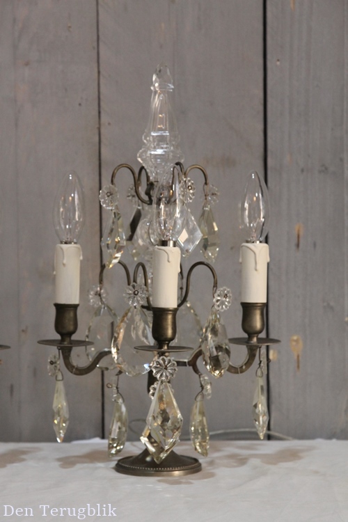 Set nikkel kleurig Franse girandoles met elk 3 lichtpunten.