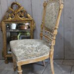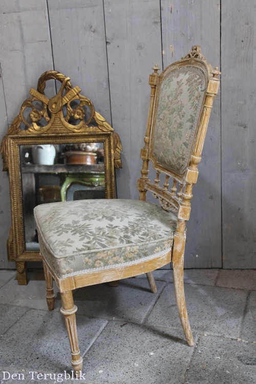 Zeer mooi laag stoeltje met een groenige en creme kleur fluweel stofje.