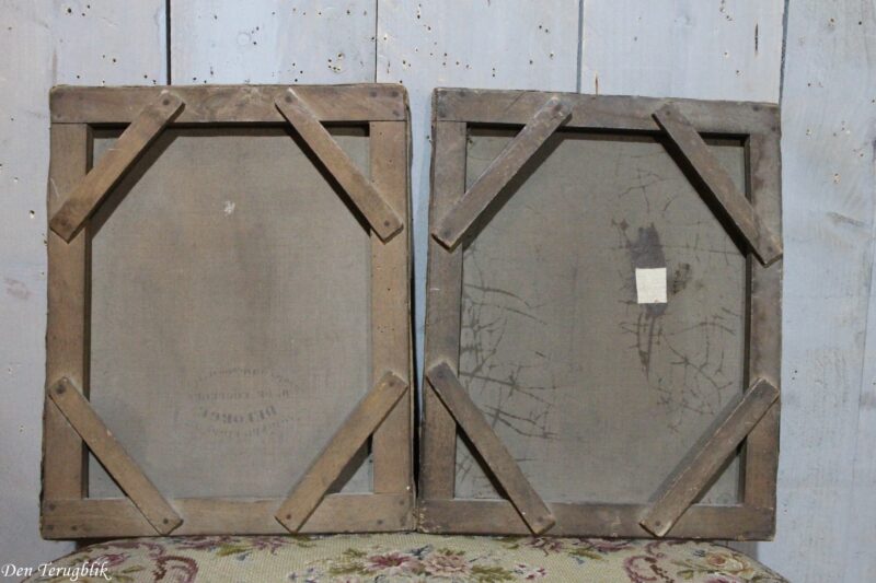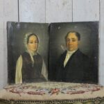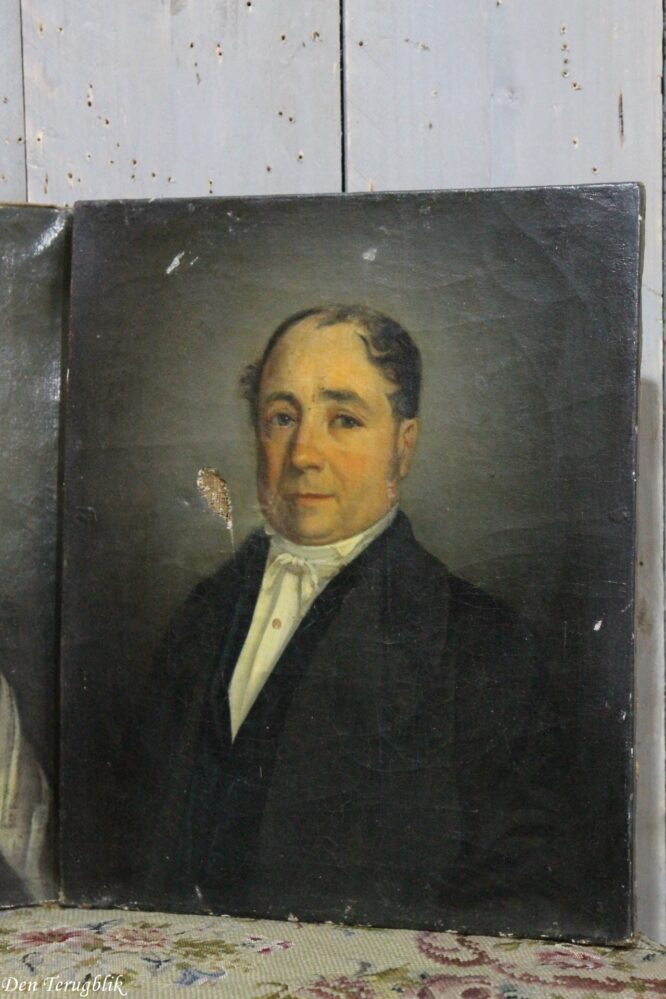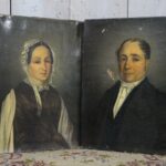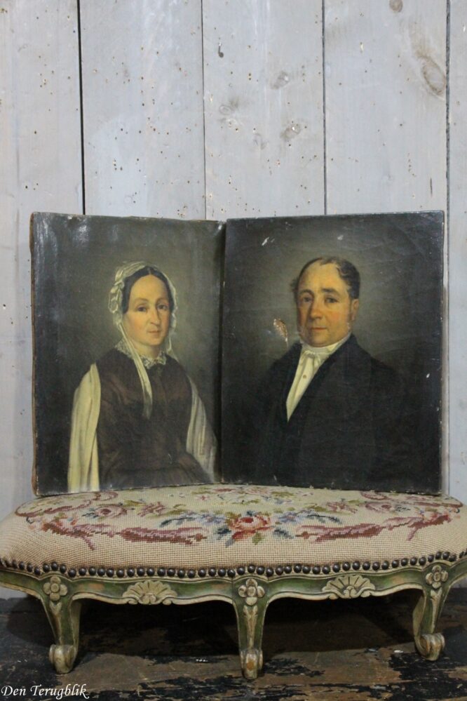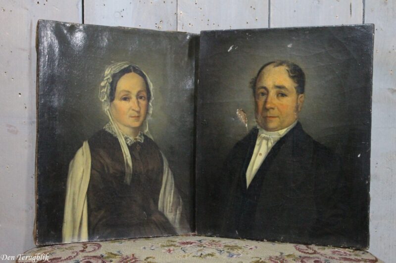 2 Antieke portretten op doek geschilderd van een echtpaar.
