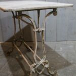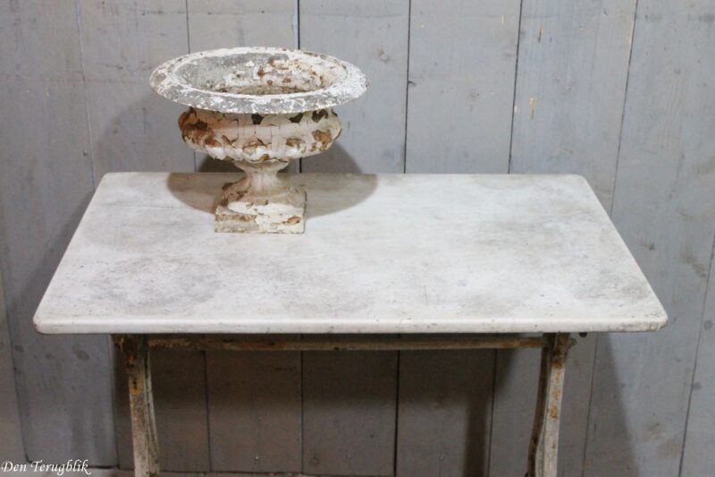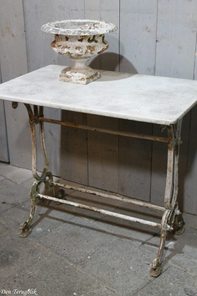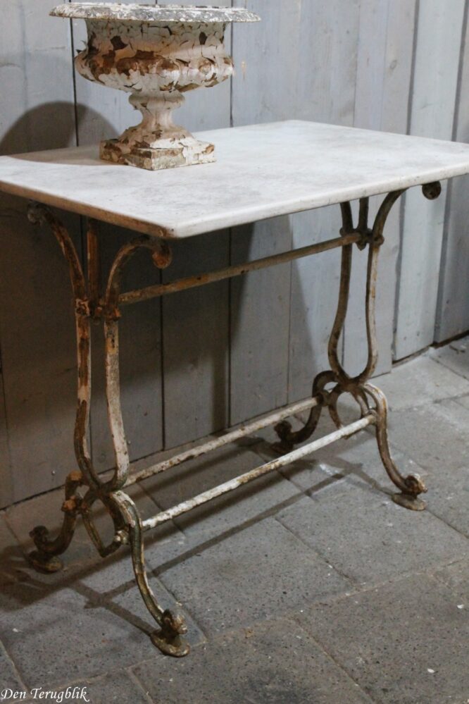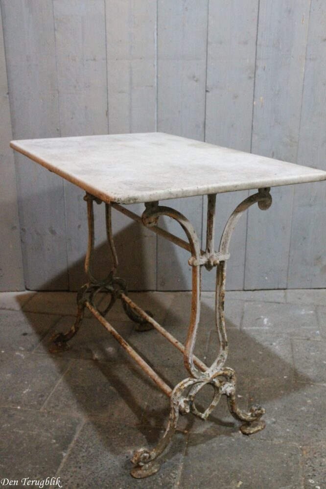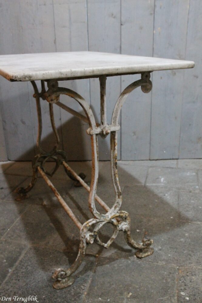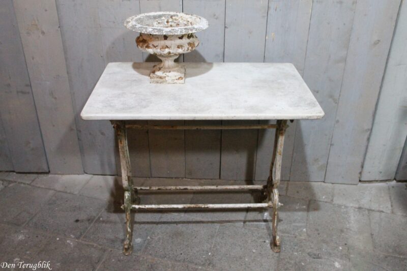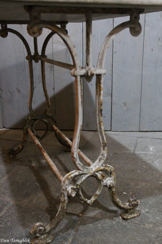 Tuintafel met een sierlijk gietijzeren onderstel.