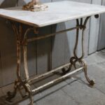 Het licht kleur bovenblad is van marmer en in een mooie staat.