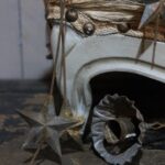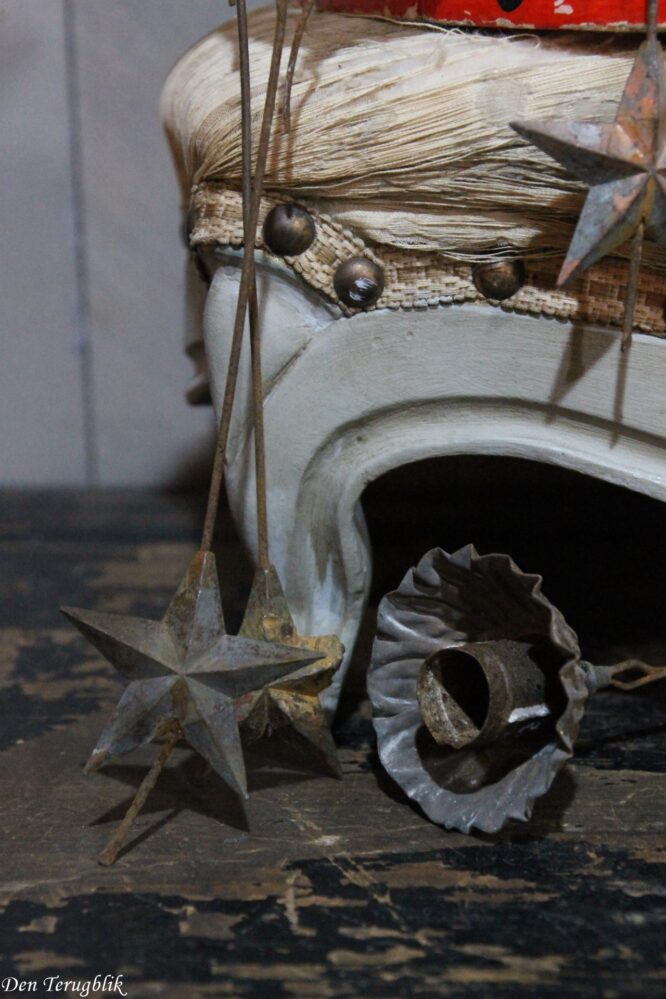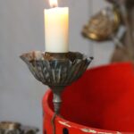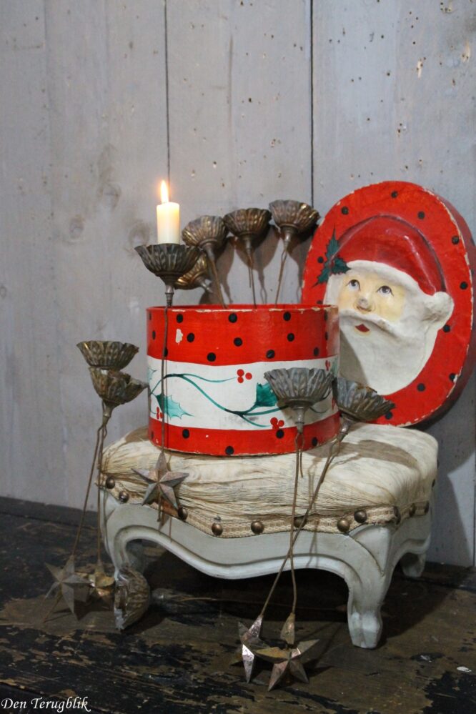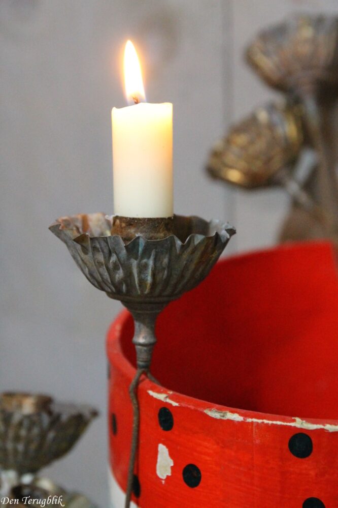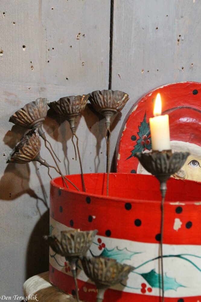 Oude kerst kaarsen kandelaartjes met een ster als tegen gewicht.