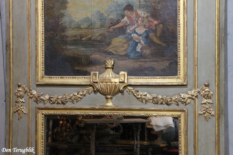Dit soort spiegel hingen meestal boven een schouw of aan de muur tussen 2 ramen in voor decoratie.