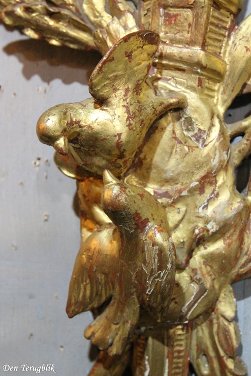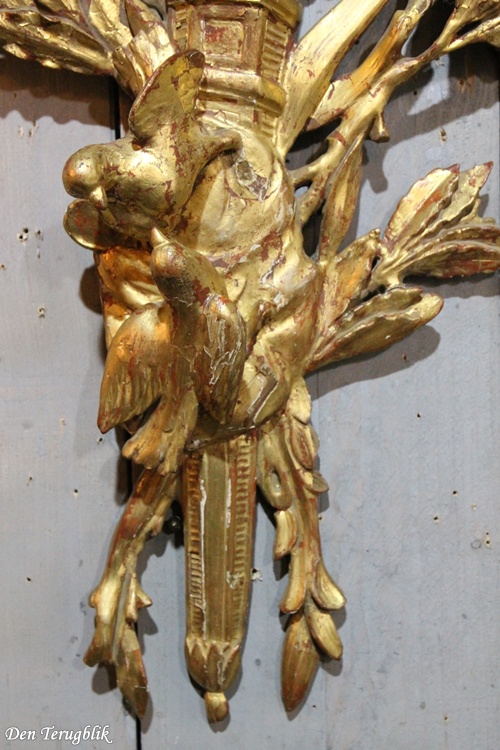 De duifjes zitten op een mooie gedecoreerde fakkel en tak.