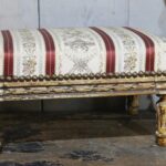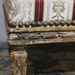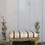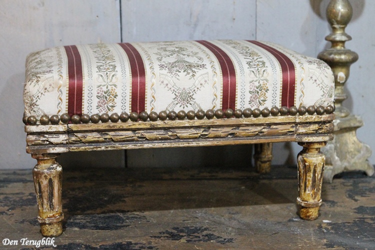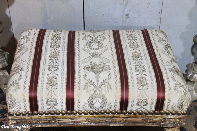 Antiek Frans voetenbankje met een prachtig zijde stofje.