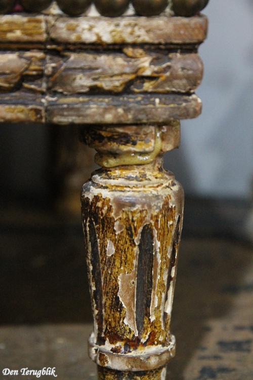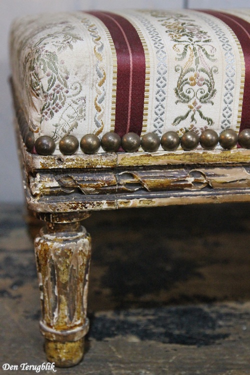Het voetenbankje is nog mooi stevig en heeft een restauratie gehad aan 1 pootje.
