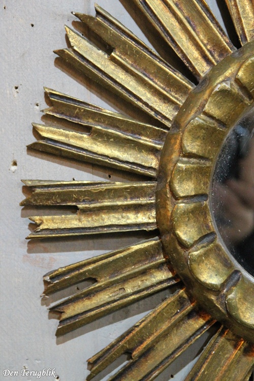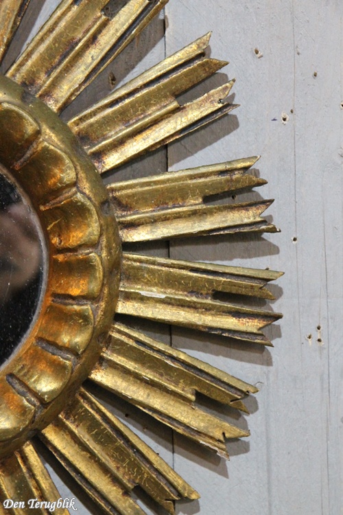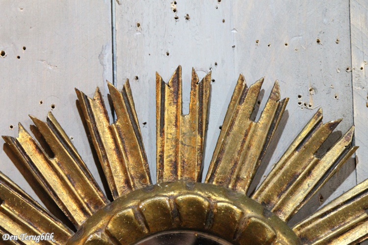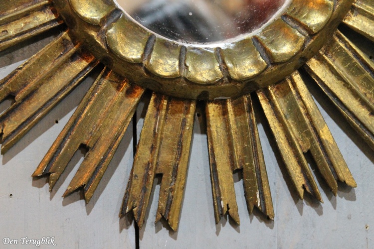 Antieke bois doré zonnespiegel met een geweldige mooie donker verkleurde goud patina.