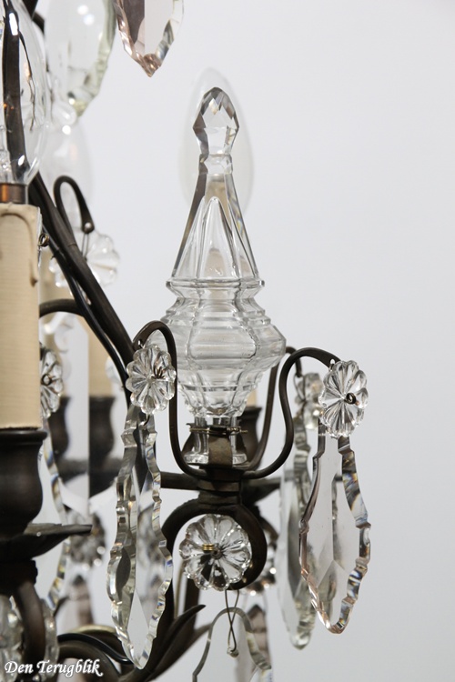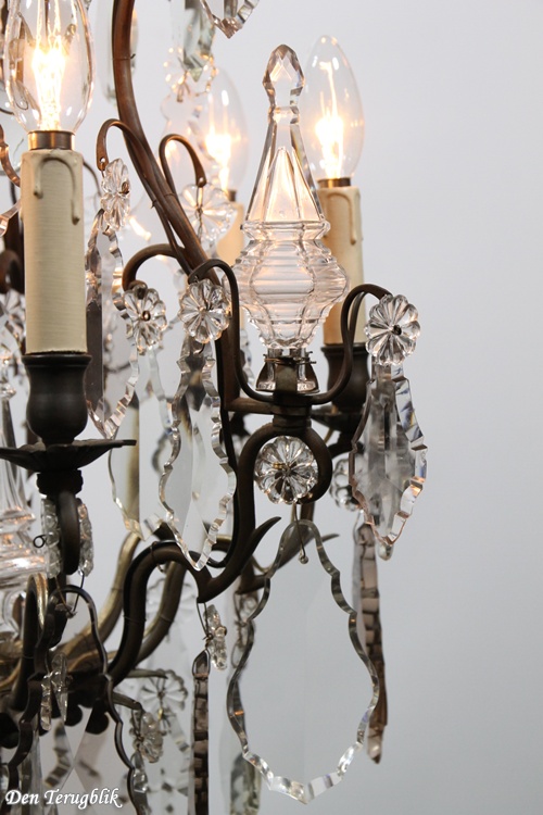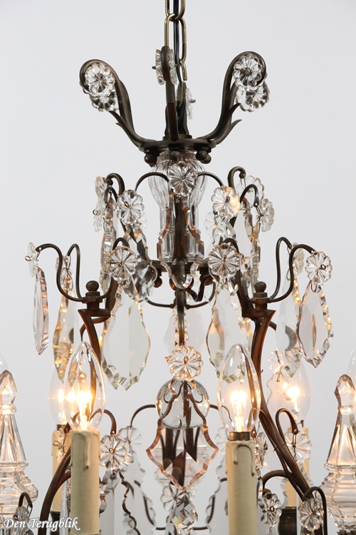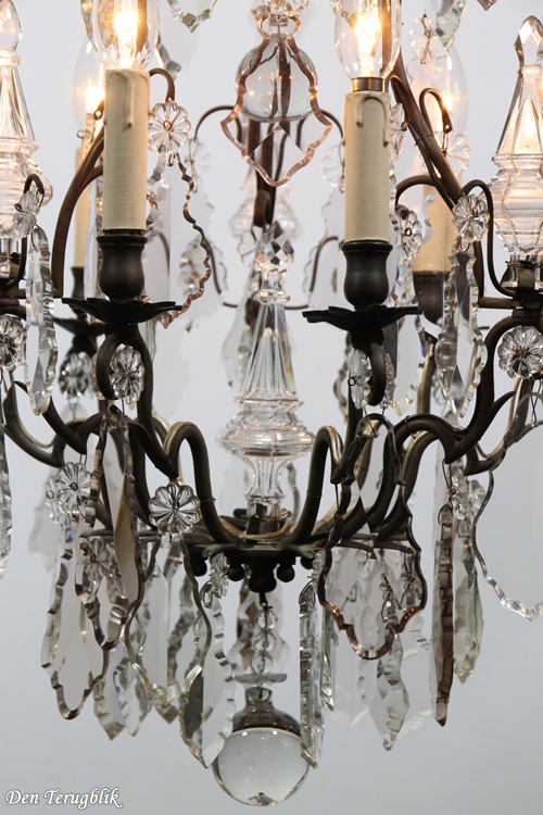Prachtige sierlijke antieke Franse kroonluchter met 6 lichtpunten.