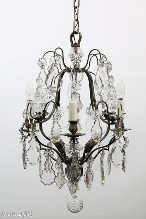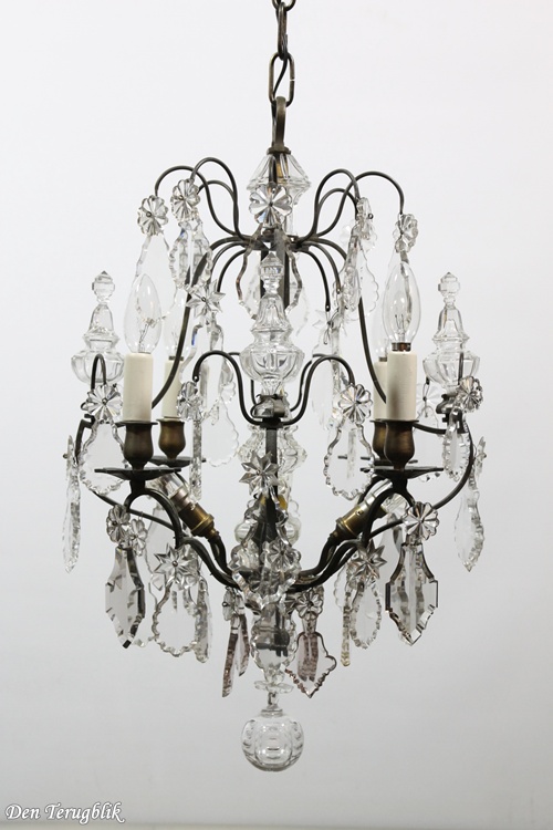 Unieke kleine antieke Franse kroonluchter met 8 lichtpunten.