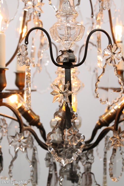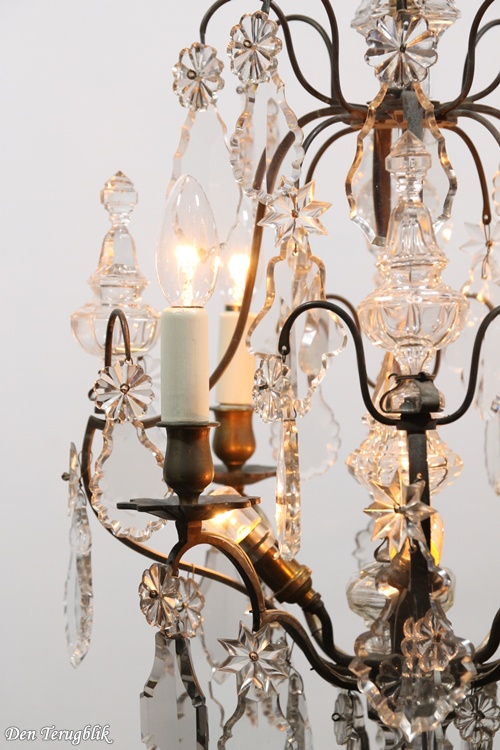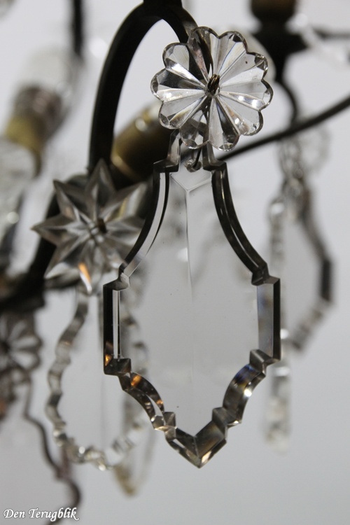 Verder hangt de kroonluchter vol prachtige kristallen waarvan enkele zijn bevestigd met een ster rozet.