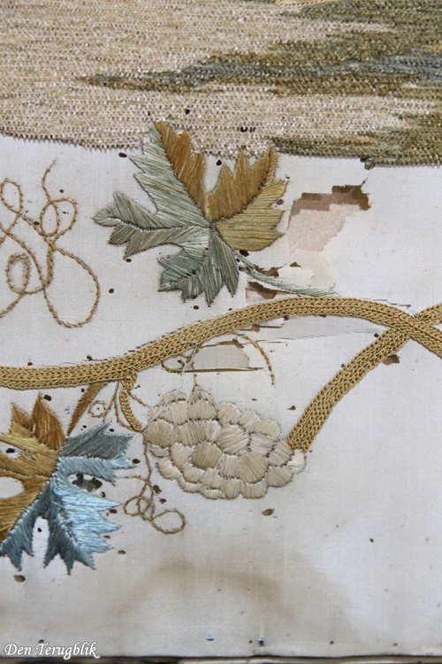 De stof heeft sleetse plekjes en is zeer fragiel. (zie de foto’s)