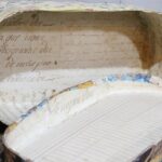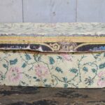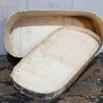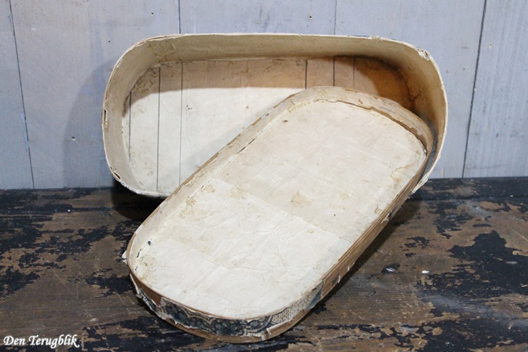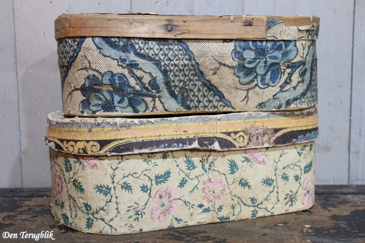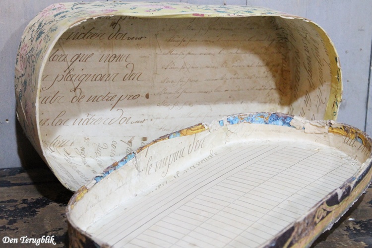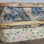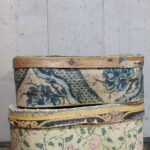 2 Ovale shabby antieke houten Franse bruidsdozen gedecoreerd met kleurrijk papier.