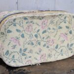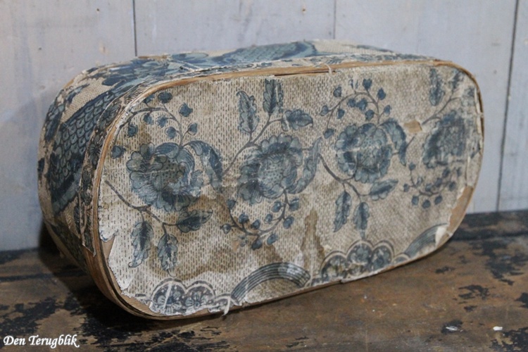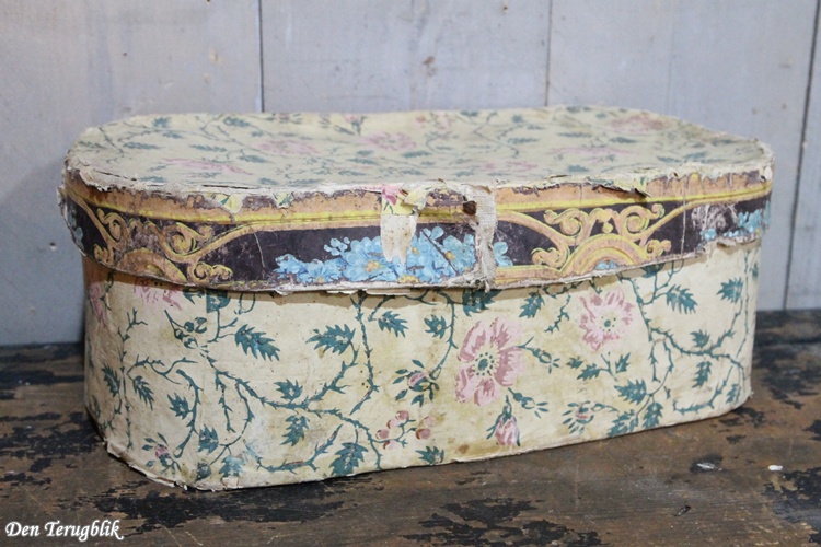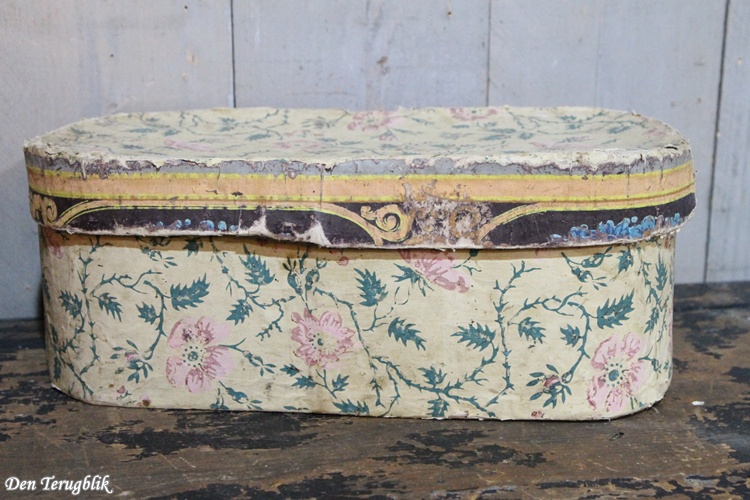 De doos met het leuke papier met roze bloempjes heeft een kartonnen deksel verder is hij van hout.