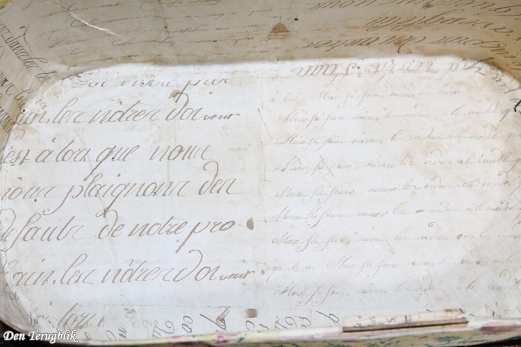 De doos met het blauwe papier is geheel van hout.