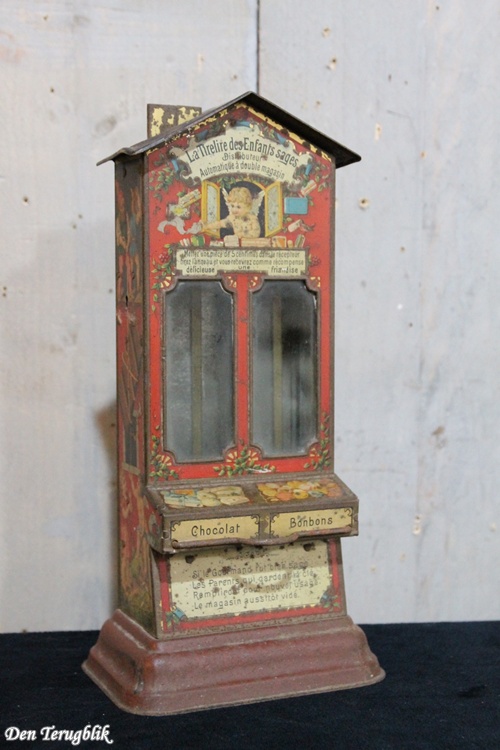 Als ze er braaf een munt in stopte konden ze er chocolade uit halen.
