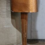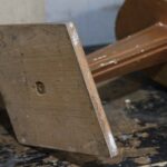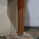Houten voetje en hij is niet verstelbaar in hoogte.