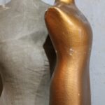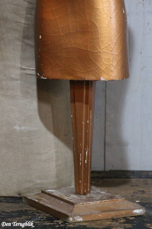 Het lijfje is van papier-maché en heeft een heel dun laagje gips in een goud kleur.