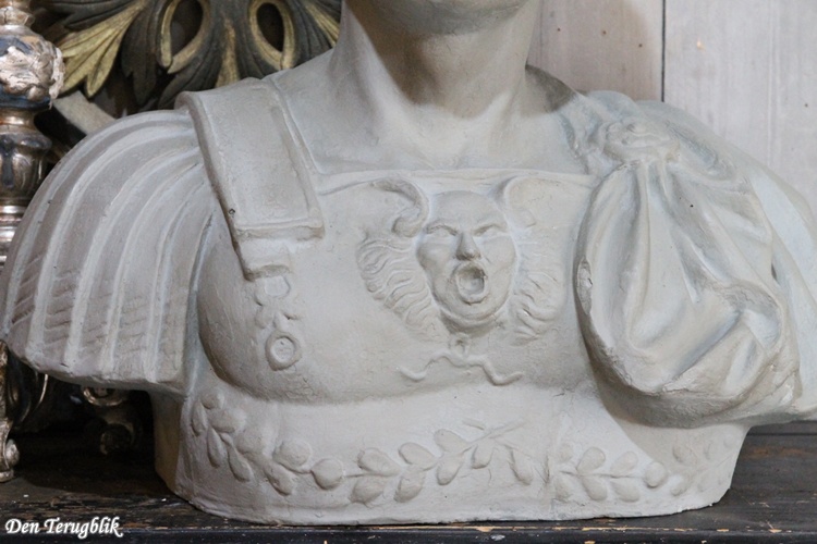 Verder heeft hij enkele mooie details zoals de lauwer krans op het hoofd de rozet op de schouder en het hoofd op de borst.