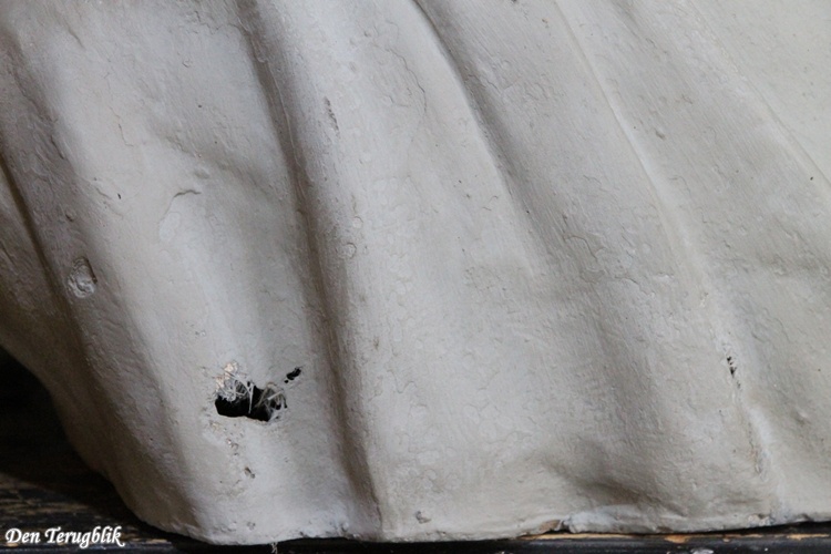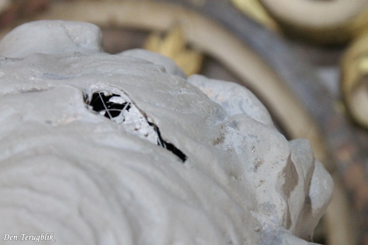 Hij is gemaakt van gips en is hol van binnen.