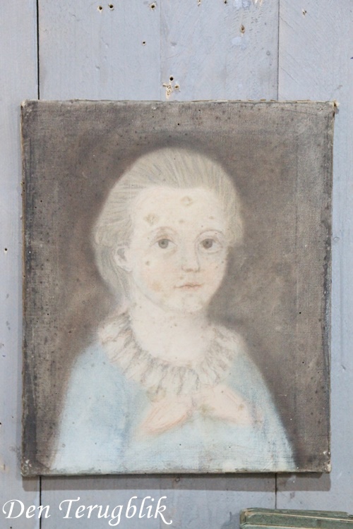 Het houten frame aan de achterkant heeft enkele worm gaatje maar hij is schoon.