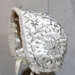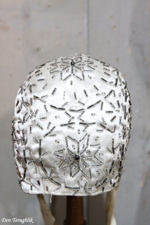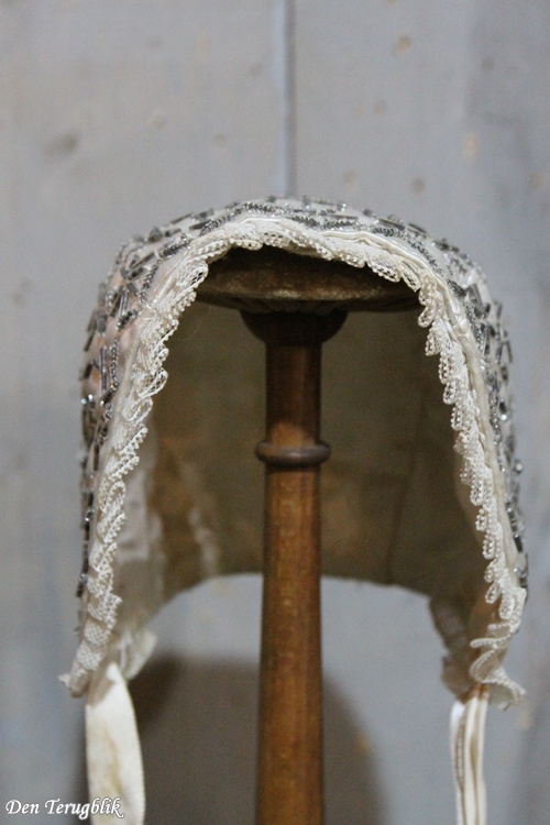Prachtig antiek zijde kindermutsje met kleine kraaltjes.