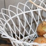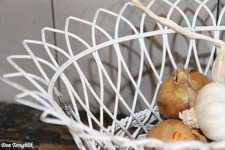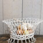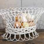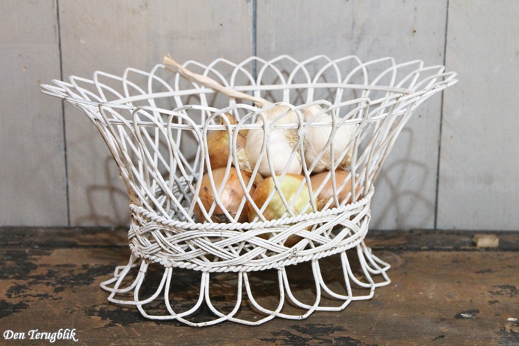 Leuk oud geweven mand van ijzerdraad in een witte kleur.