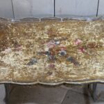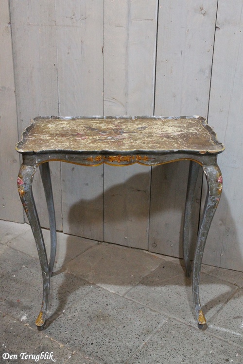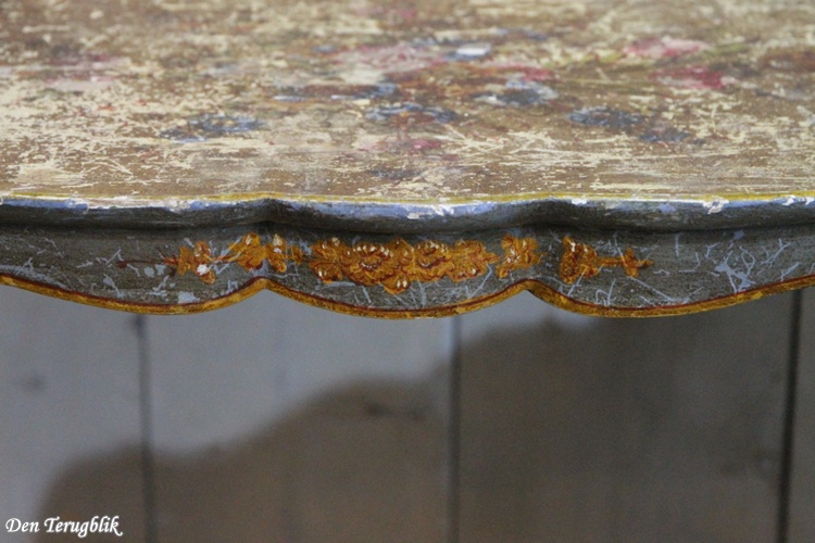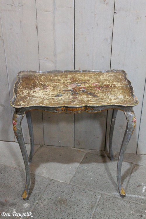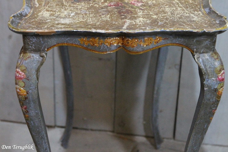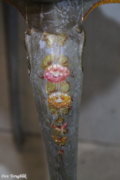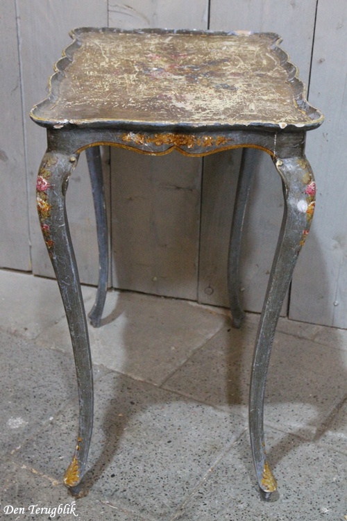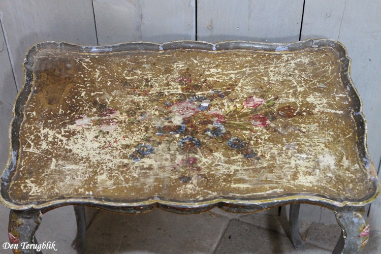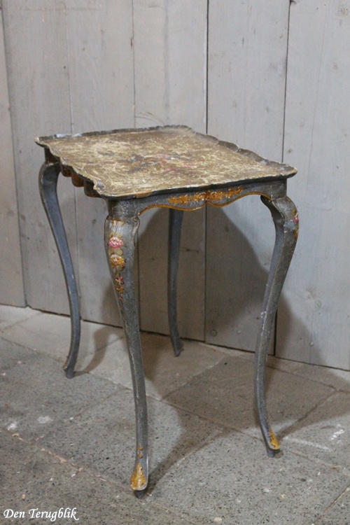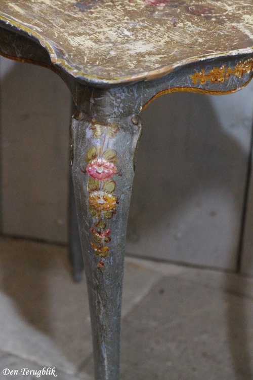 Het tafeltje is hand beschilderd met bloem motieven op alle pootjes.