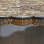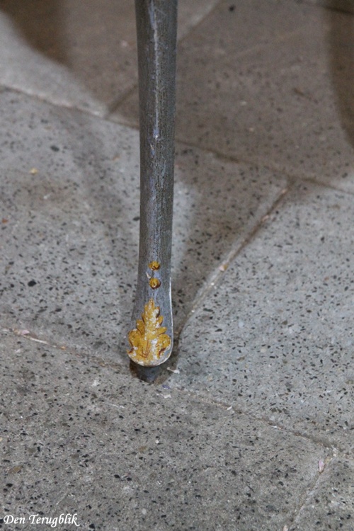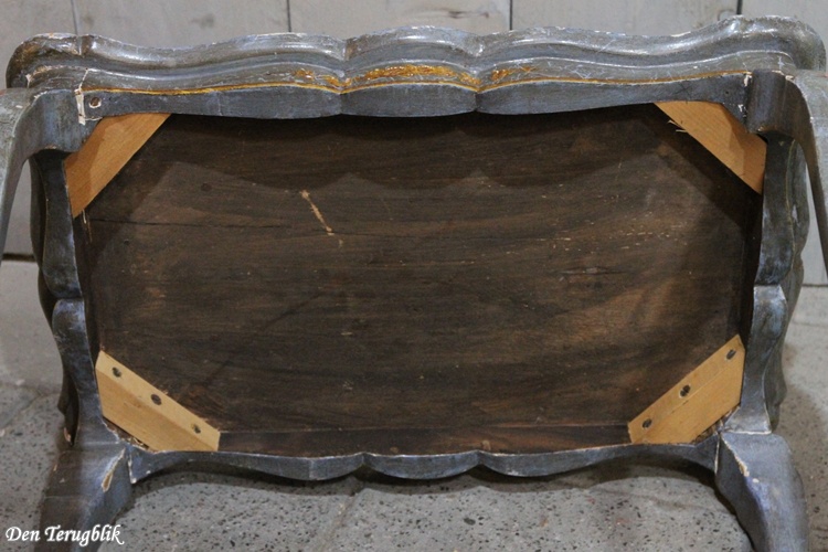 De sierlijke pootjes zijn verstevig met houten blokjes onder het blad.