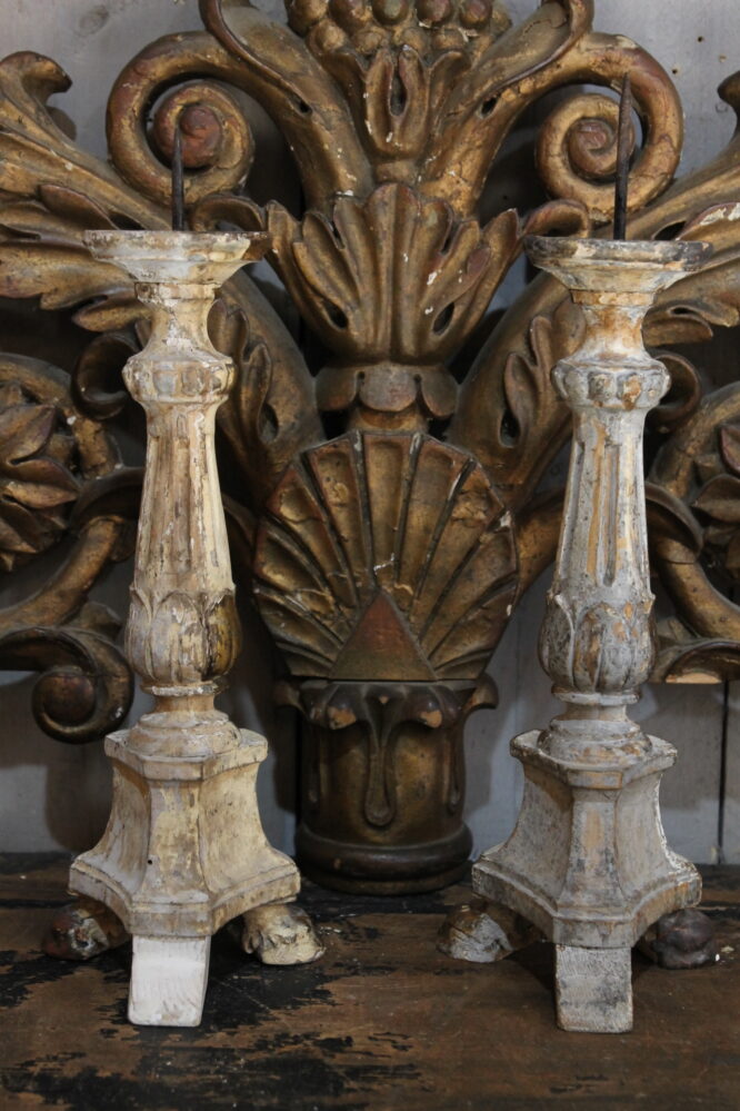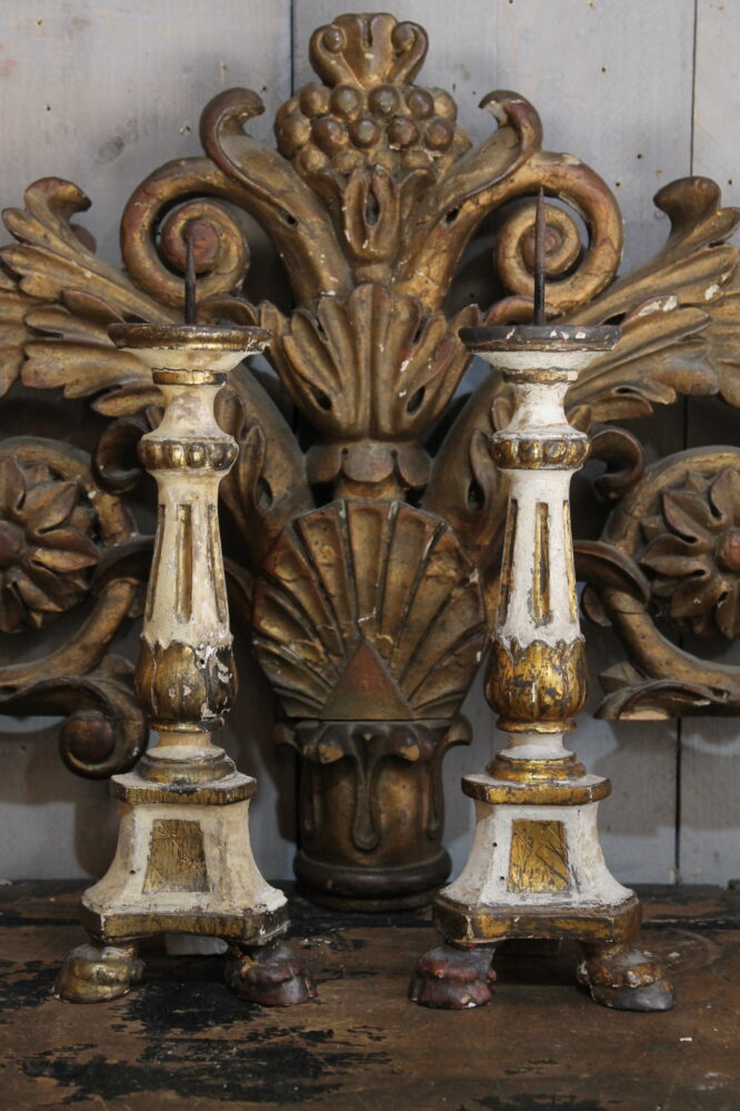 2 Kleine antieke Italiaanse kaarsen kandelaartjes.