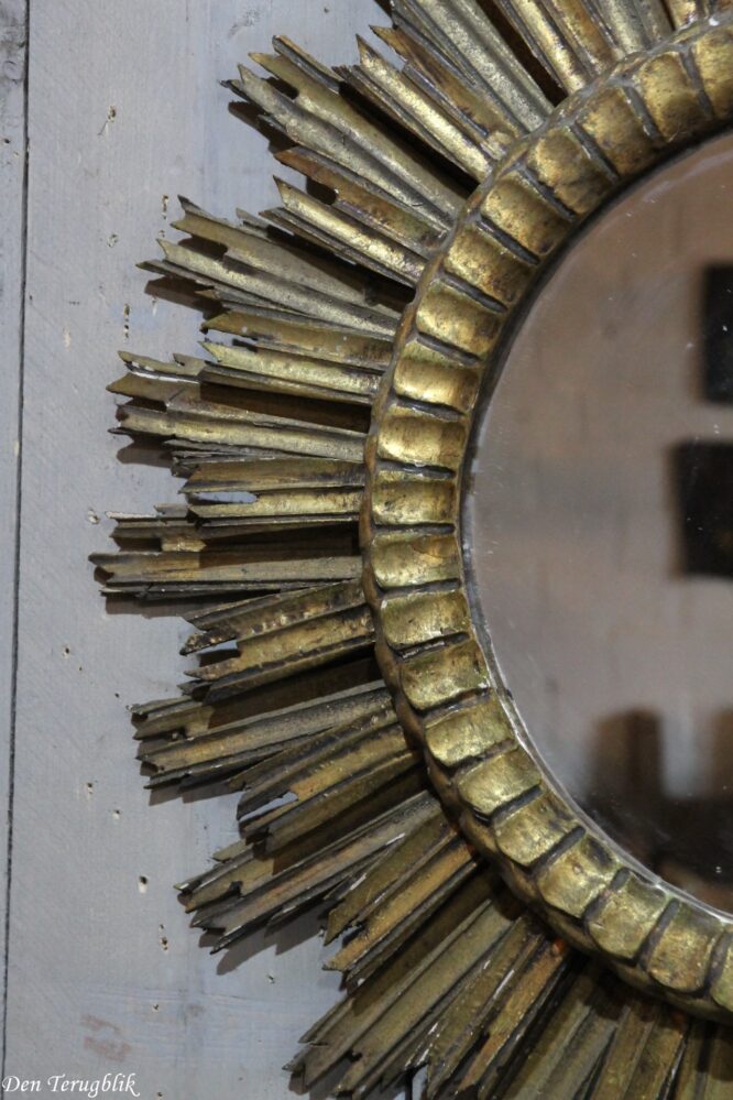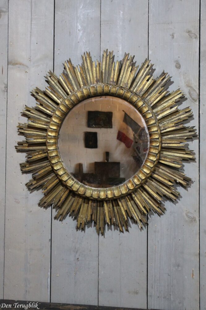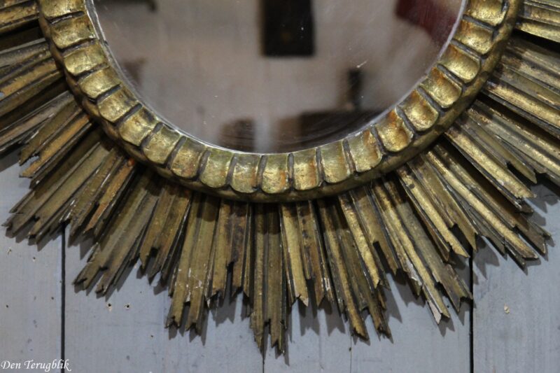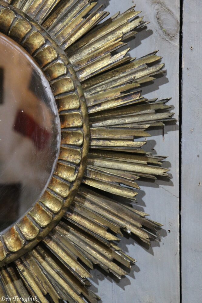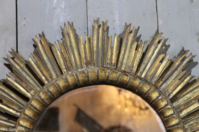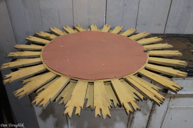 Beautiful, large, antique French sun mirror with two different-sized sun rays.
