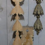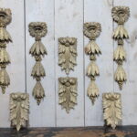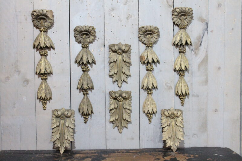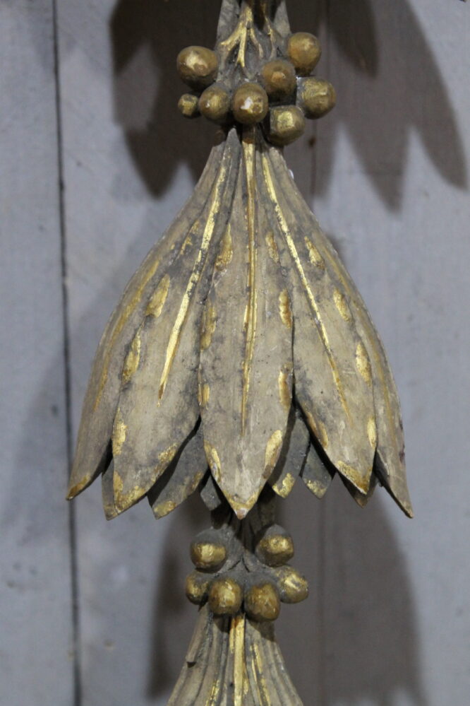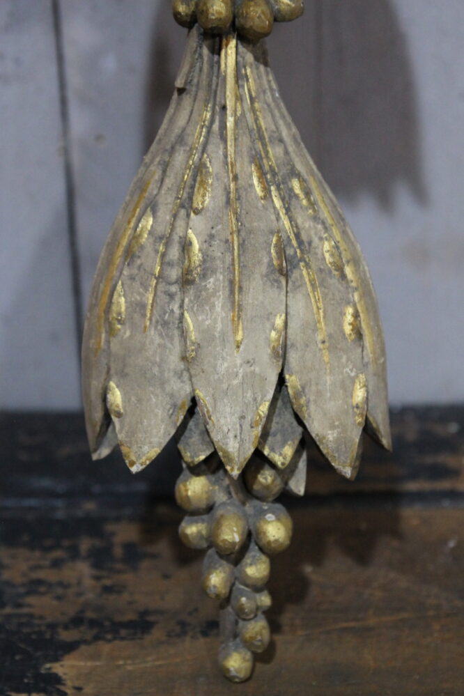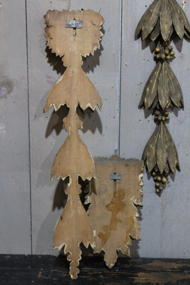 Beautiful old wooden bois dore ornaments with a lovely patina and a subtle gold stripe.