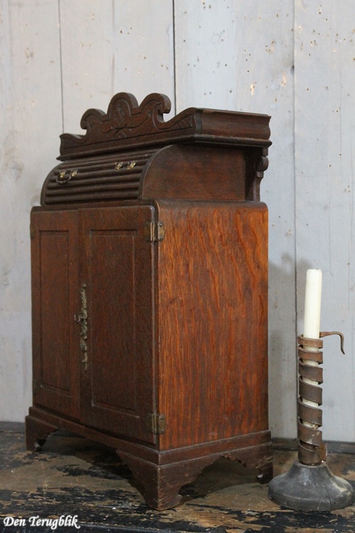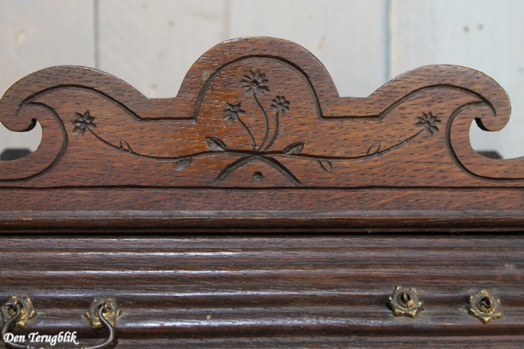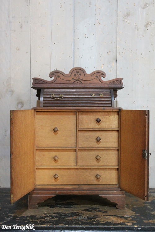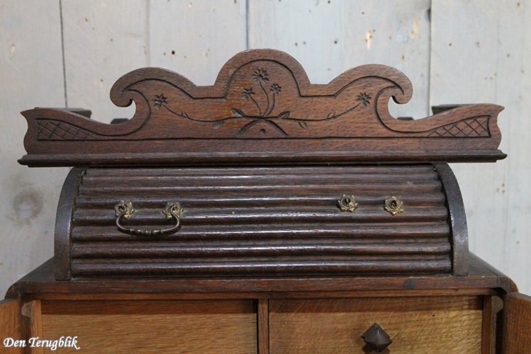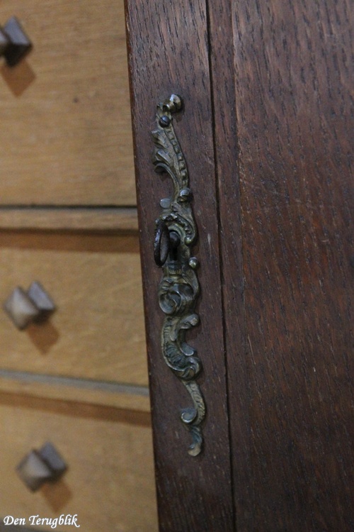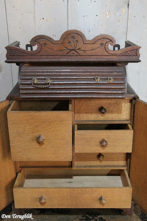 The drawer on the top is missing one handle; otherwise, it’s in good condition.