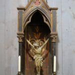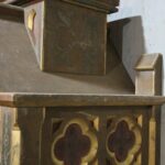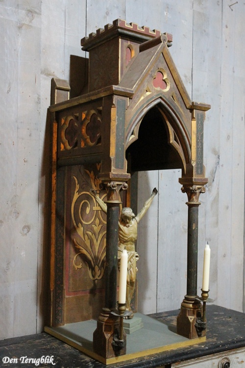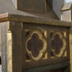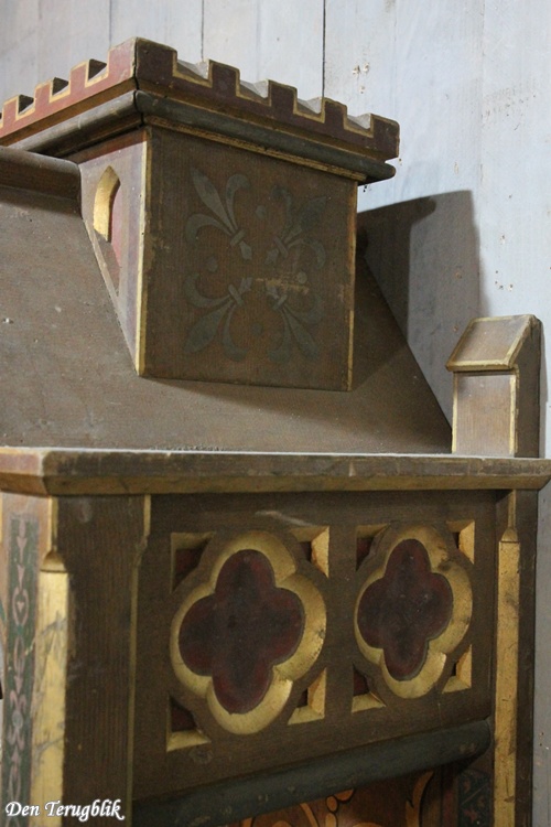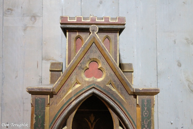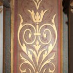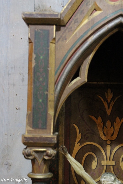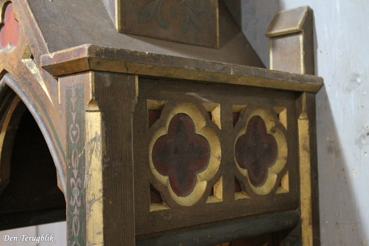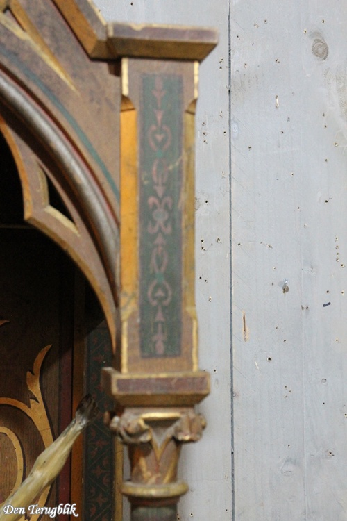 The back of the tabernacle features a beautiful, ornate painted decoration.