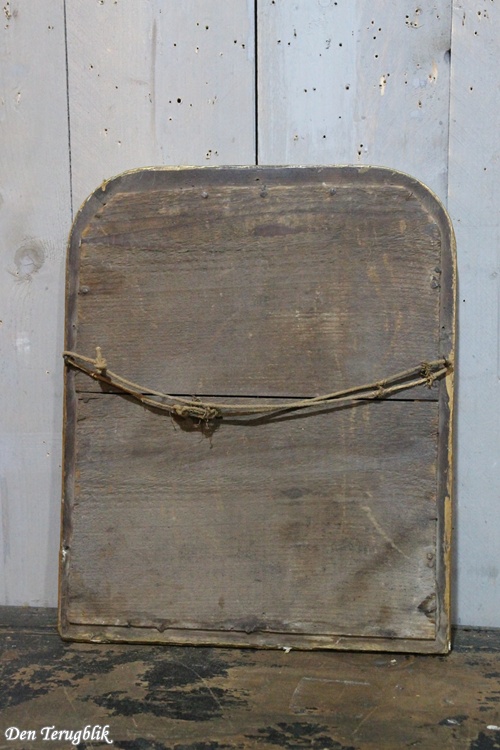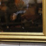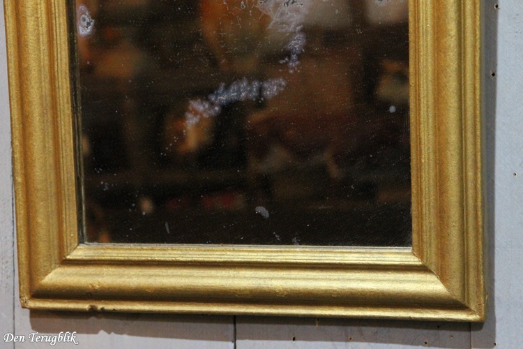 The frame still contains the original mirror, which has a small weathered spot.