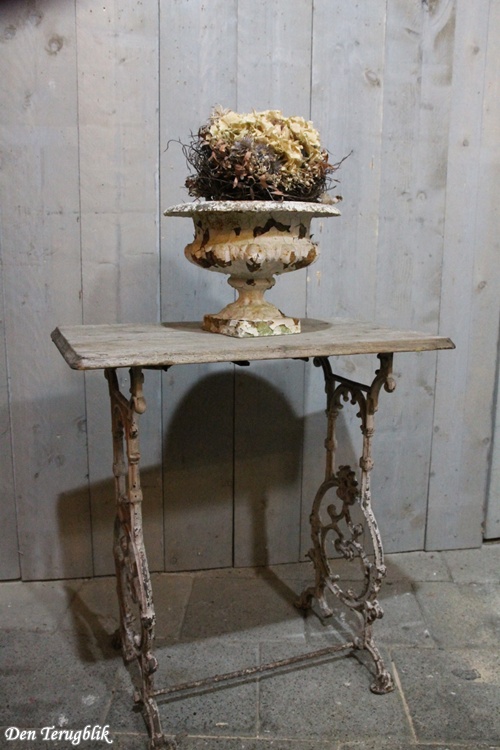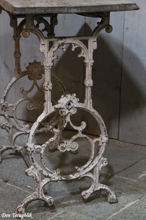 Small French garden table with a beautifully decorated cast iron base.