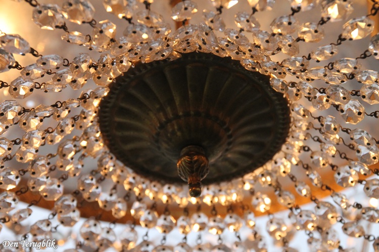 A beautiful, slightly larger, antique ceiling light with four internal lights.