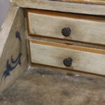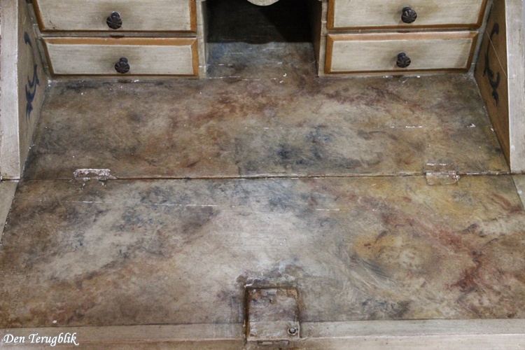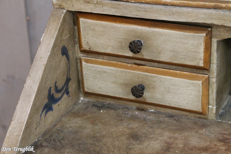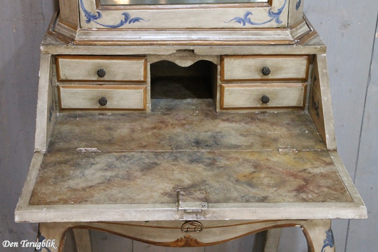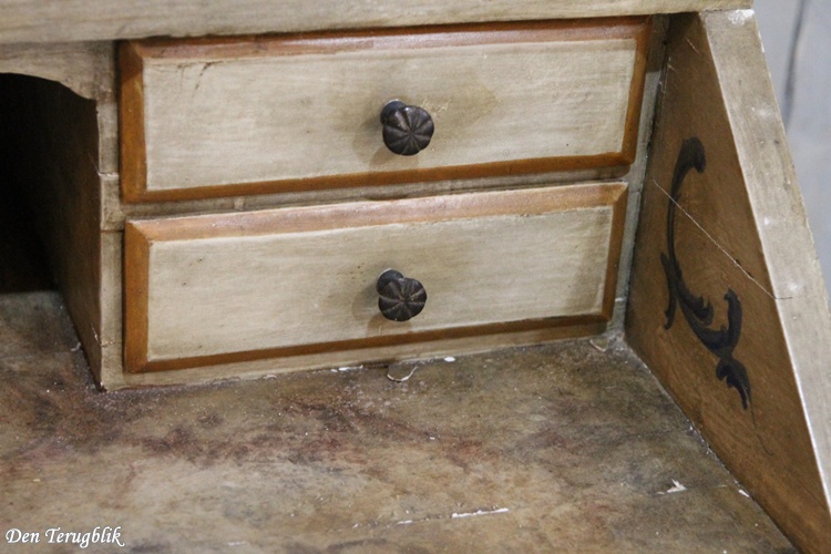The desk section has four small drawers and can be locked with the original key.