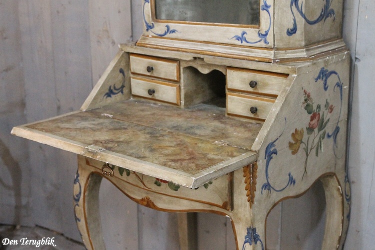 A stunningly beautiful antique desk with a display case.
