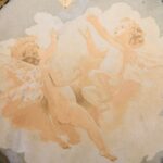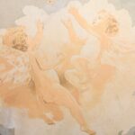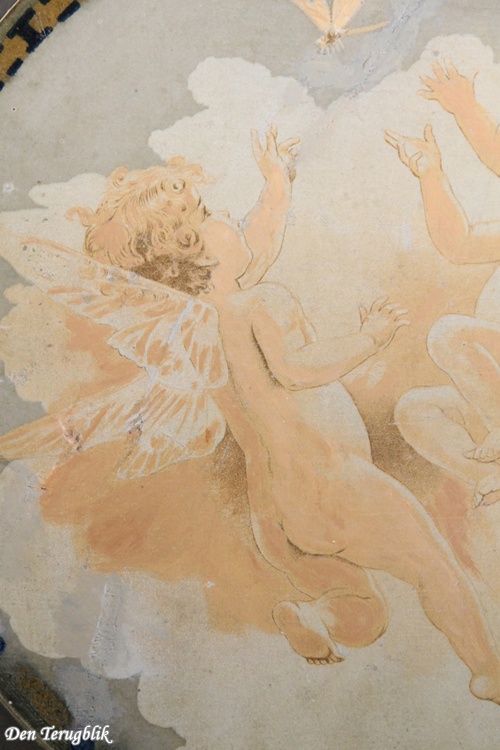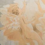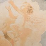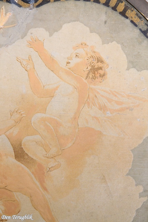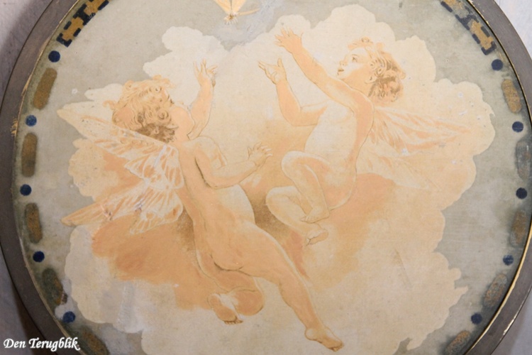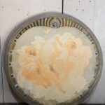 Round wooden Art Nouveau panel with little angels.