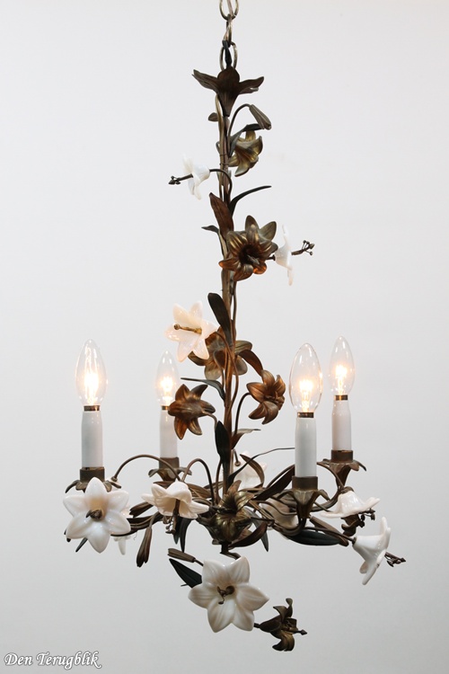 Chandelier with white opaline flowers